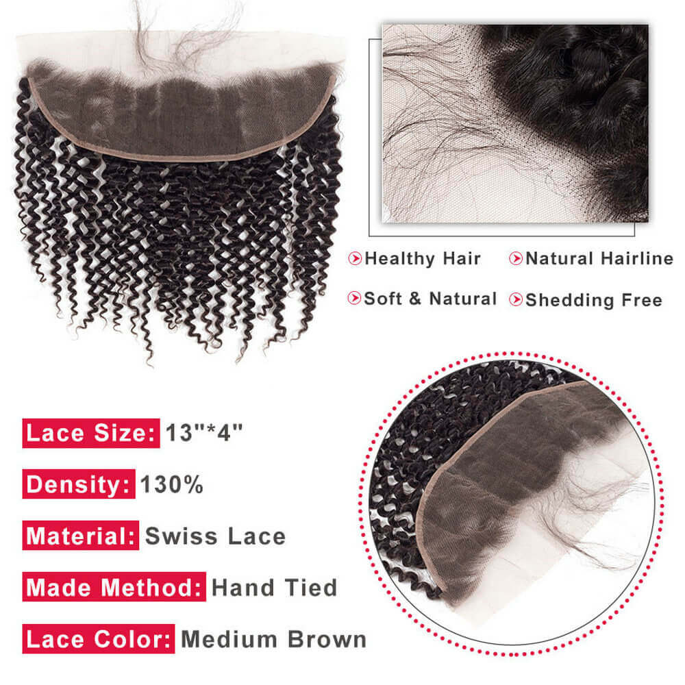 Human Hair Unprocessed Brazilian Curly Lace Frontal 13x4 Ear To Ear Lace Frontal Closure Kinky Curly Brazilian Virgin Hair