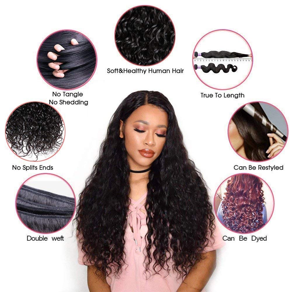 Yavida Hair Water Wave Hair 13x4 Ear To Ear Lace Frontal Unprocessed Brazilian Virgin Lace Frontal Closure with Baby Hair Natural Color